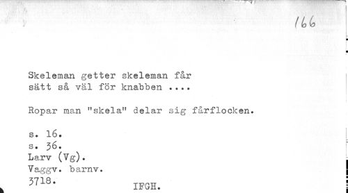 //// (U //// ¦ ¦ //// t //// Skeleman getter skeleman får sätt så väl för knabben . ... //// ( //// Ropar man "skela" delar sig fårflocken. //// s. 16. ! s. 36. //// Larv (Vg). - //// Vaggv. barnv. | //// 3718• IFGH. j ////