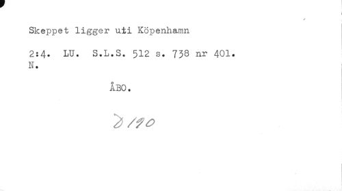 //// i //// Skeppet ligger uti Köpenhamn //// 2:4. LU. S.L.S. 512 s. 738 nr 401. N. //// ÅBO. //// I ////