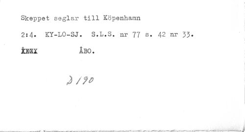 //// Skeppet seglar till Köpenhamn //// i //// i //// i > //// ! //// 2:4. KY-LO-SJ. S.L.S. nr 77 s. 42 nr 33. //// I //// XE&X ÅBO. //// \ \ ////