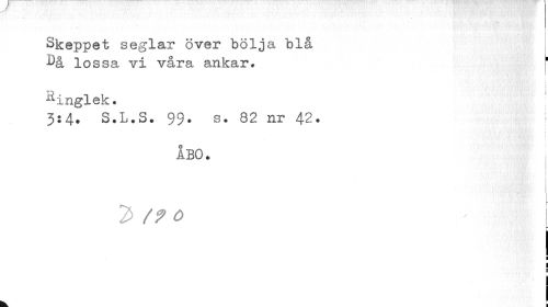 //// Skeppet seglar över bölja blå ^å lossa vi våra ankar» //// S-inglek. //// 3:4# S.L.S. 99. s• 82 nr 42. //// v //// 1 //// ÅBO. //// 2 o - //// l 1 //// 3 //// fe ////