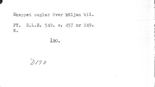 //// F I //// I ¦ //// • ' //// Skeppet seglar över feöljan "blå. //// PY. S.L.S. 542. s. 457 nr 249» i //// N. | //// ! //// ÅBO. //// i //// i ¦ ////