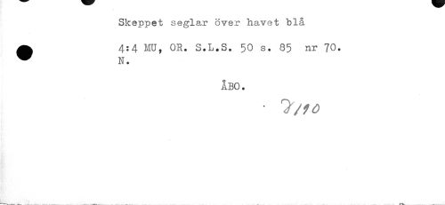 //// Skeppet seglar över havet blå ^ 4:4 MU, OR. S.L.S. 50 s. 85 nr 70. //// ÅBO. //// • 7/f.c ////