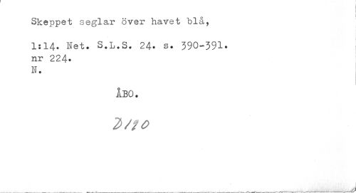 //// I //// i //// Skeppet seglar över havet "blå, //// i //// 1:14. Ket. S.L.S. 24» s. 390-391. //// nr 224. //// N. //// ÅBO. //// 2>/fo //// ___ ___ ___„„...^ ////