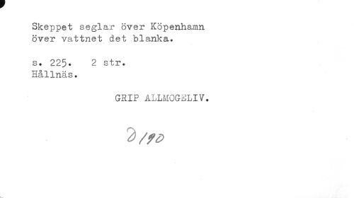 //// Skeppet seglar över Köpenhamn över vattnet det blanka» //// s. 225. 2 str. Hållnäs. //// GRIP ALLMOGELIV. 2 /f& ////