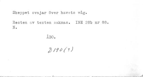 //// Skeppet svajar över havets våg. Resten av texten saknas. IIE 28b nr 88. //// N. //// ÅBO. //// P/fö/?) ////