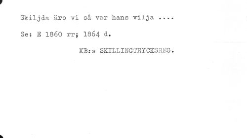 //// Skiljda äro vi så var hans vilja ... //// Se: E 1860 rr; I864 d. //// KB: s SKILLINGTRYCKSREG. //// k ////