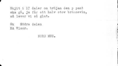 //// Skjit i 17 daler om tröjan den p pant j //// ska gå, ja får ett halv stov brännevin, ! //// i //// så lever vi så glat. //// * r //// 1 //// Sk Södra delen l //// HA Visor. j //// NORD MUS. I //// L //// ? //// i i //// k 1 ////