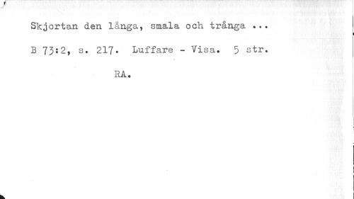 //// Skjortan den långa, smala och trånga .«. //// i //// B 73:2, s. 217. Luffare - Visa. 5 str. //// 4 //// RA. //// I //// c //// T | //// i ////