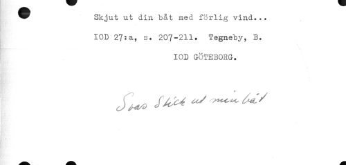 //// ^^ Skjut ut din båt med förlig vind... //// IOD 27:a, s. 207-211. Tegneby, B. //// IOD GÖTEBORG. ////
