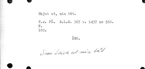 //// Skjut ut, min båt. //// T.s. PÅ. S.L.S. 567 s. 1437 nr 56O. N. 182. //// ÅBO. //// SAM tcS ^ ^ ////