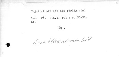 //// ffife-M .I...V-. ni j im i ">i i mo ni 'i' d ... >¦ '""jl^ ' ]-W-" ' ' '~--- ---m ^ //// Skjut ut min båt med förlig vind //// 6:6. Pl. S.L.S. 104 a s. 30-31. //// nr. //// ÅBO. //// m cf^ 1* v ////