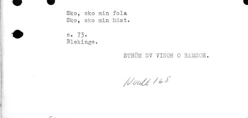 //// Sko, sko min fola Sko, sko min häst* //// Blekinge. //// STRÖM SV VISOR 0 RAMSOR. ////