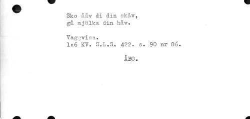 //// Sko ååv di din skåv, gå mjölka din håv» //// Vaggvis a. //// 1:6 KV. S.L.S. 422. s. 90 nr 86. //// ÅBO. //// Ik- i» ^å 1 ////