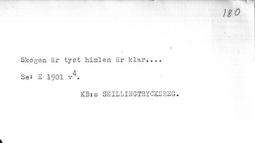 //// no //// i //// Skogen är tyst himlen är //// k X dj i* # « »« //// Se'- E 1901 v4. //// * < KB:s SKILLINGTRYCKSHEG. ////