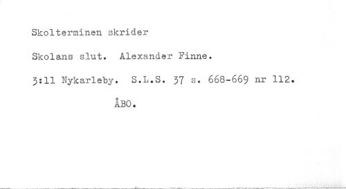 //// Skolterminen skrider Skolans slut. Alexander Finne. 3:11 Nykarleby. S.L.S. 37 s. 668-669 nr 112. //// ÅBO. ////