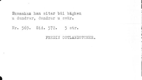 //// I //// ! //// Skomakan han sitar "bäi bägken [ //// i //// u dundrar, dundrar u svär. //// Nr. 569. Sid. 572. 5 str. j //// PREDIN GOTLANDSTONER. i //// I //// i //// i //// i ¦ //// • j //// 1 //// I //// L ¦ //// i ////