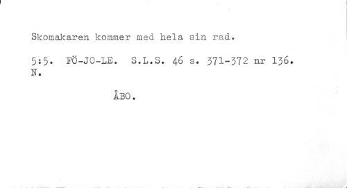//// Skomakaren kommer med hela sin rad. //// 5:5. FÖ-JCS-LE. S.L.S. 46 s. 371-372 nr 136. IT. //// ÅBO. //// ; • _... . ...* . 1 . ^ . . a-"- - .»- - .1 t ////
