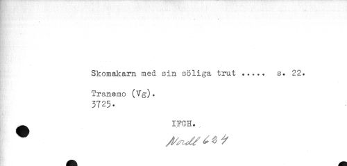 //// • « //// 4 //// Skomakarn med sin soliga trut ... s. 22. //// Tranemo (Vg). //// 3725. //// ^ IFGH., ////