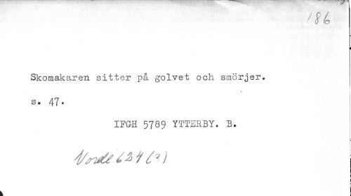 //// m //// i //// Skomakaren sitter på golvet och smörjer. //// . i //// s. 47. //// IFGH 5789 YTTERBY. B. //// r //// t * t fr) //// ¦ //// i //// i ¦ //// | ////