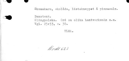 //// Skomakarn, skolåda, lästakneppet å pinnasuln. //// "i^fc Danstext. //// ^^ Slängpolska. Ord om olika hantverksmän m.m. //// Vgl. 25:53, s. 30. //// ULMA. //// .•"•»-i. ////