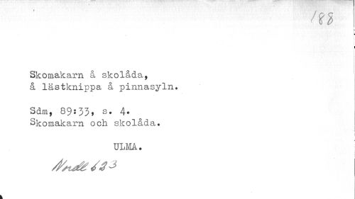 //// (n //// L ¦ //// I //// f //// Skomakarn å skolåda, å lästknippa å pinnasyln. //// Sdm, 89$33» s. 4* //// Skomakarn och skolåda. //// i //// ULMA. //// f ////