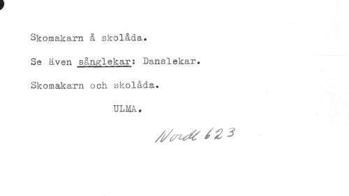//// Skomakarn å skolåda. //// Se även sånglekar: Danslekar. //// Skomakarn och skolåda. //// ULMA.» //// /y^e t i * ////