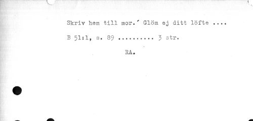 //// K //// » //// Skriv hem till mor.' Glöm ej ditt löfte ... //// B 51:1, s. 39... 3 str. //// * //// sX i l« ////