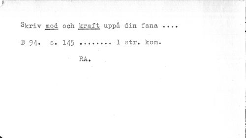 //// Skriv mod och kraft uppå din fana . .. ? //// i //// B 94* s* 145 •••••••• 1 str. kom. //// RA. //// * i //// i //// ! //// _ //// 1 //// t //// 1 //// c I //// i //// 1 //// ¦ //// t 1 //// c ////