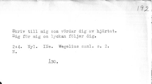 //// I //// 5 I //// Skriv till mig som vördar dig av hjärtat, ^äg för mig om lyckan följer dig. //// 2:4* Nyl. INe. Wegelius saml. s. 2. //// N. //// ÅBO. //// i //// i I //// k i ////