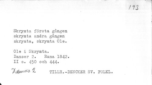//// tn //// i //// i i //// i //// i //// j //// t i //// Skrymta första gången skrymt a andr a gängen skrymta, skrymta 01 e. //// 01e i Skrymta. Danser 2. Runa 1842* //// II s» 450 och 444. //// ^ofriM^ 1 TILLH. -DENCKER SV. FOLKL. ////