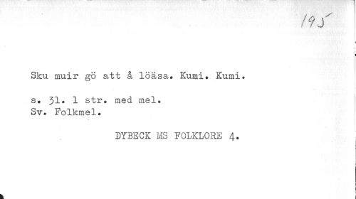 //// i //// I //// Sku muir gö att å löasa* Kumi* Kumi. //// j //// s» 31. 1 str ? med mel. Sv. Folkmel. //// DYBECK MS FOLKLORE 4. //// - //// | //// i j //// i //// i i ////
