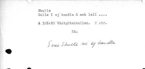 //// Skulle //// Sulle I ej handla å mek lell //// Å 326:80 Yästgötaknallen. 2 str. //// * //// rå. //// fl»u> ^ ^ ////