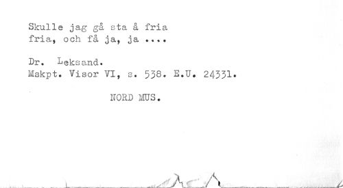 //// Skulle jag gå sta å fria fria, och få ja, ja ... //// Dr. Leksand. //// Mskpt. Visor VI, s. 538. E.U* 24331» //// HORD MUS. ////