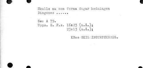 //// Skulle nu som forna dagar hedningen Diogenes ... //// r //// Se: A 79. //// Upps. Z. P.s. 16123 (u.å.)} //// 23:13 (u.å.); //// KB: s SKILLI1IGTRYCKS3EG. ////