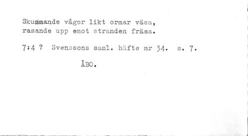 //// i //// j //// Skummande vågor likt ormar väsa, rasande upp emot stranden fräsa. //// 7:4 ? Svenssons sainl. häfte nr 34' s. 7» //// ABC. i //// I //// i I //// I ////