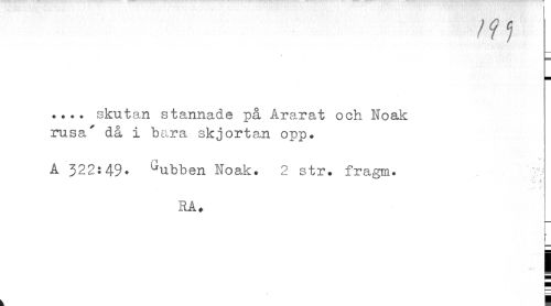 //// ... skutan stannade på Ararat och Noak rusa' då i bara skjortan opp. //// A 322:49- Gubben Noak. 2 str. fragm. //// RA. //// ¦ //// I ////