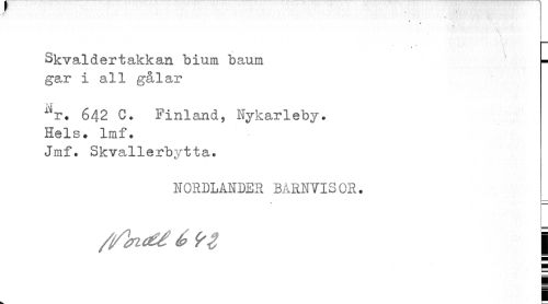 //// » //// Skvaldertakkan bium baum gar i all gålar //// • L V //// XV» 642 C. Finland, Nykarleby. //// Hels» Imf. //// Jmf• Skvallerbytta. //// NORDLANDER BARNVISOR» //// 1 i ////