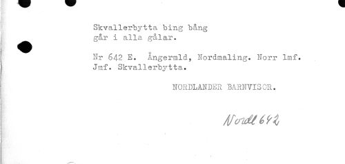 //// Skvallerbytta bing bång går i alla gälar. //// Nr 642 E. Ångerraid, Nordmaling. Norr lmf. Jmf. Skvallerbytta. //// NORDLANDER BARNVISOR. //// /IfcrvMéti, //// i ////