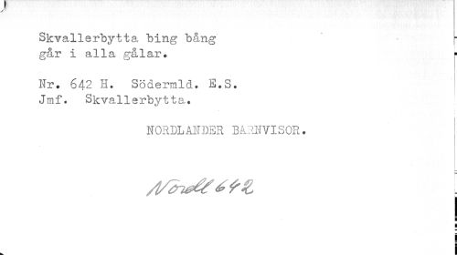 //// Skvallerbytta bing bång //// går i alla galar. p //// Hr. 642 H. Södermld. E.S. J mf. Skvallerbytta. //// NORDLANDER BARNVISOR. //// 1 //// 1 ¦ //// I i ////