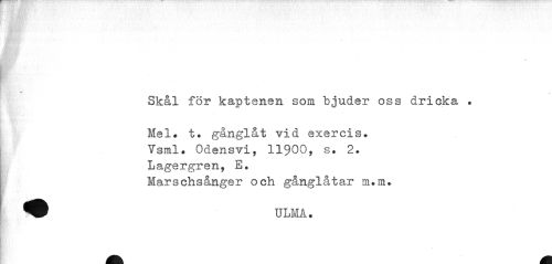 //// y » //// Skål för kaptenen som bjuder oss dricka . //// Mel. t. gånglåt vid exercis. Vsml. Odensvi, 11900, s. 2. Lagergren, E. //// Marschsånger och gånglåtar m.m. ////