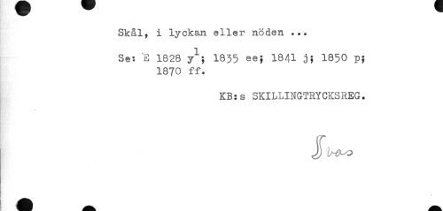 //// Skål, i lyckan eller nöden ... //// 1 //// Se: E 1828 y ; 1835 eej 1841 j; 1850 pj //// 1870 ff. //// KB:s SKILLINGTRYCKSREG. //// 0 //// j) ////