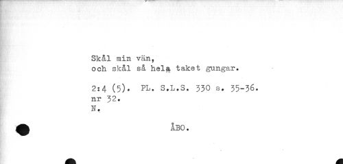 //// Skål min vän, //// och skål så hel3, taket gungar. //// 2:4 (5)? PL. S.L.S. 330 s. 35-36. //// nr 32. //// N, ////