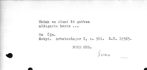 //// Skänk en slant åt gubben nådigaste herre ..* //// Sm Öja. //// Mskpt? Årbetssånger I, s* 901. E*U. 22365» //// NORD MUS. ////