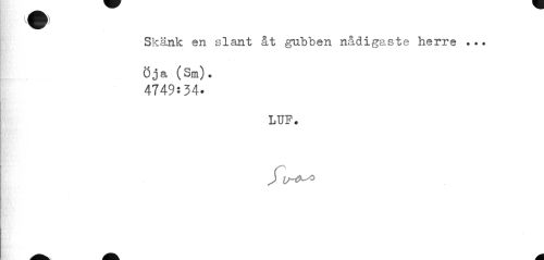 //// Skänk en slant åt gubben nådigaste herre ... Öja (Sm). //// 4749:34. //// LUF. ////