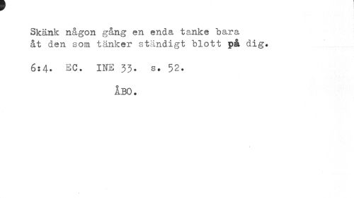 //// Skänk någon gång en enda tanke bara åt den som tänker ständigt blott på dig. //// 6:4. EC. INE 33. s. 52. //// ÅBO. ////
