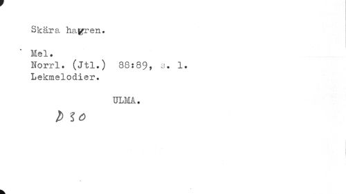 //// Skära havren. Mel. //// Norrl. (Jtl.) 88:89, s. 1. Lekmelodier. //// ULMA. //// t> 10 ////