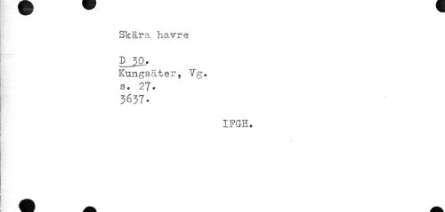 //// Skära havre 50, //// Kungsäter, Vg. s. 27. //// 3637. //// IFGH. //// / ////