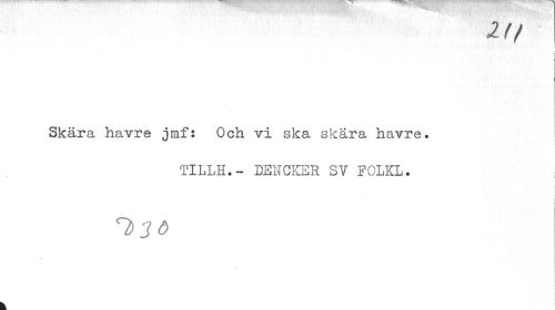 //// K i //// r //// Skära havre jmf: Och vi ska skära havre. //// tillh.- ds1jcksr sv folkl. //// "1)30 k ////