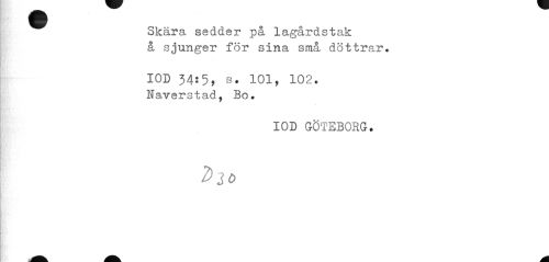 //// Skära sedder på lagårdstak å sjunger för sina små döttrar. //// IOD 34!5» s. 101, 102. Naverstad, Bo. //// IOD GÖTEBORG. ////