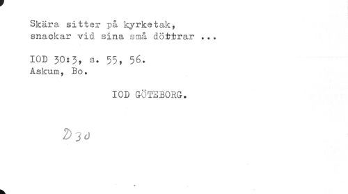 //// Skära sitter på kyrketak, snackar vid sina små döttrar ... //// IOD 30:3, s. 55, 56. Askum, Bo. //// IOD GÖTEBORG. //// k. ////